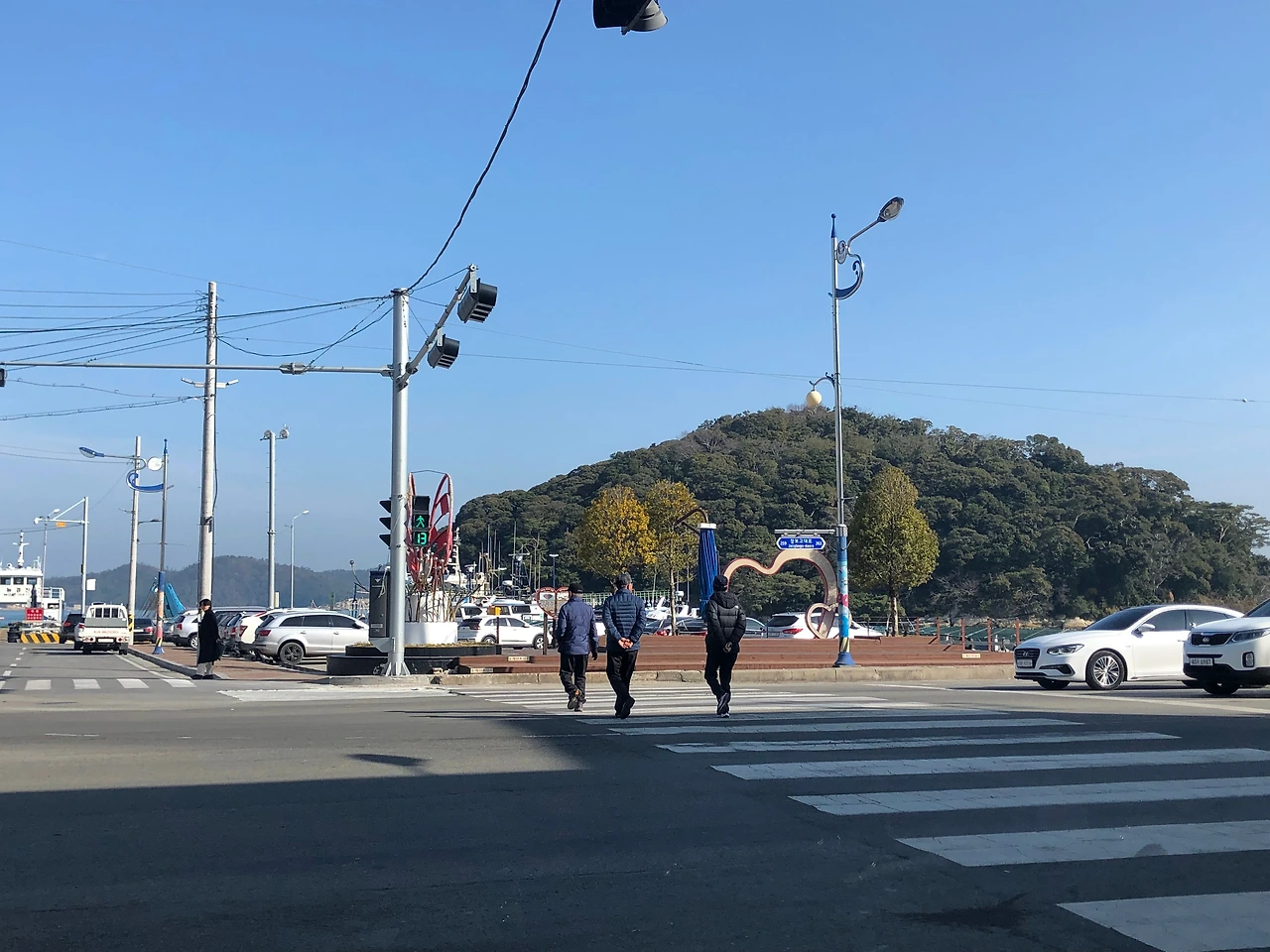 숙소 로비 카페 앞에는 횡단보도가 있었다. 너무 멀지도 않고, 너무 가깝지도 않은 거리에 있었다. 눈을 크게 뜨고 보면 사람들의 표정까지 관찰할 수 있었지만, 적당한 거리 덕분에 사람들은 내가 관찰하고 있다는 사실 조차 몰랐다. 시시한 여행 중에 우연히 찾아온 이 기회를 놓칠 수 없었다. 나는 노트북 뚜껑을 닫고, 노트와 펜을 집어 들었다. 완도 사람들은 어떤 사람들일까? 무슨 옷을 입고 있을까? 어떻게 걸어 다닐까? 완도 사람에 대한 호기심은 폭발했고, 나는 고개를 들어서 사람들을 관찰하고 다시 고개를 내려서 관찰한 사람들을 기록하기를 수 없이 반복했다. 첫 번째 관찰대상은 뽀글이 파마가 풀린 할머니다. 동네 미용실을 간지 한참 됐는지, 오른쪽 머리의 풀이 죽었다. 할머니는 무거워 보이는 보라색 가방도 부족해서, 무엇인가 가득 들어있는 검은색 봉지를 들고 뒤뚱뒤뚱 횡단보도를 건너셨다. 반대편엔 검은색 재킷, 검은색 바지, 검은색 모자를 세트로 입고 있는 할아버지가 보였다. 할아버지는 신호등이 몇 번이고 바뀌는데 횡단보도를 건너지 않았다. 그저 주머니에 두 손을 집어넣고 같은 자리를 빙빙 돌아다닐 뿐이다. 그러다 똑같은 스타일로 입고 나온 친구 두 명이 나타나 반갑게 악수를 하고 나서야 횡단보도를 건너셨다. 배가 볼록하고 나온 중년의 남성도 있었다. 양팔을 골반에 대고 늠름한 포즈로 신호를 기다렸고, 신호가 바뀌자 손바닥을 피고 양팔을 휘휘 저으면서 걷는 모양이 귀여워서 피식하고 웃음이 났다. 차도로 시선을 옮기니 강렬한 주황색 패딩을 입은 배달원이 신호를 기다리고 있었다. 구름 한 점 없는 맑은 날씨에 내리쬐는 햇빛 때문인지 미간을 찌푸리고 있었는데, 그 모습을 보고 있으니 내 미관도 배달원을 따라 찌푸려졌다. 횡단보도를 한참 보고 있는데 민트색 저지를 입은 학생이 자전거를 타고 나타났다. 스포츠머리를 하고, 뿔테 안경을 쓰고 있던 그 학생은 신호를 기다리는 동안 자전거에서 내려 얌전히 기다렸다. 차도 없고, 사람도 없는 횡단보도에서 신호를 잘 지키는 모습을 보고 내가 괜히 뿌듯했다. 그러나, 한참을 보고 있어도 스마트폰을 보면서 걸어 다니는 사람은 한 명도 없었다. 서울에선 거의 모든 사람들이 고개를 떨구고 스마트폰을 보면서 걷는데 말이다. 완도 사람들은 고개를 꼿꼿이 들고 앞을 보면서 걸었다. 나이가 들어 허리가 굽은 할머니, 할아버지들도 시선만큼은 앞을 향해 있었다.