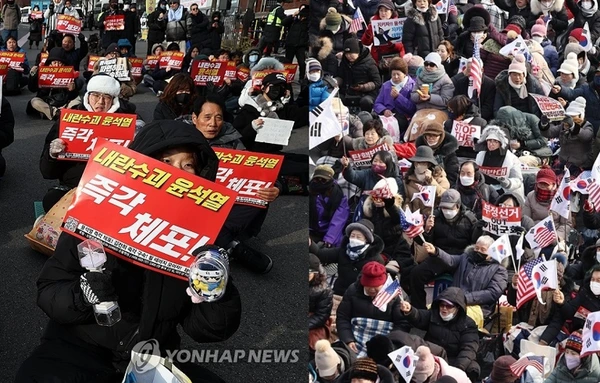 2025.01.09 탄핵 찬성집회(왼쪽)와 반대집회 모습@사진 연합뉴스