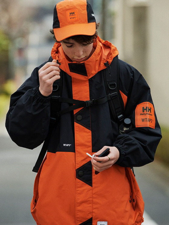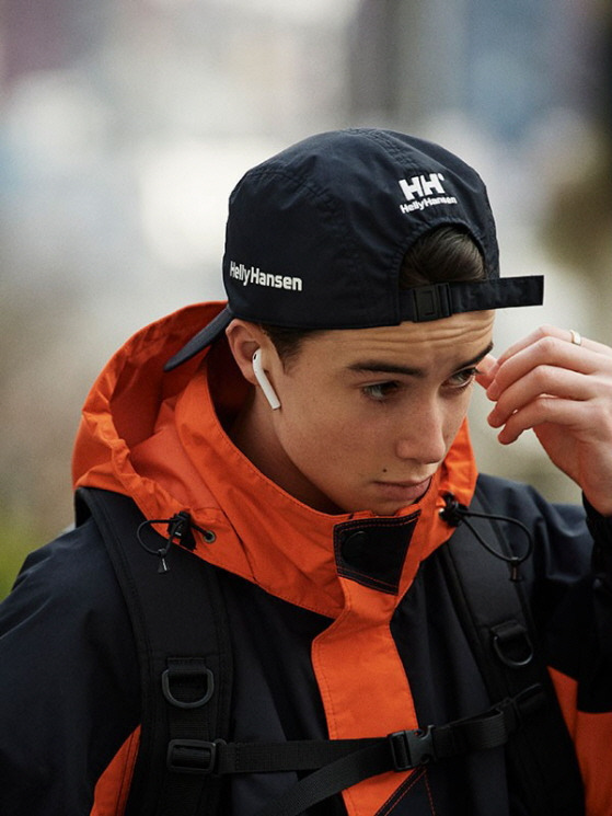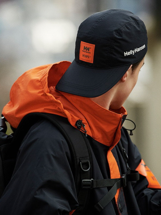 헬리 한센의 HELLY TECH® 소재로 제작된 크루즈 재킷은 이중 구조로 인해 방수성이 뛰어나며 삼각형 형태의 패널 디자인으로 포인트를 주고 있으며 동일한 소재로 제작된 T-5캡에는 두 브랜드의 로고가 프린트되어 협업 아이템이라는 것을 잘 나타내고 있습니다.
