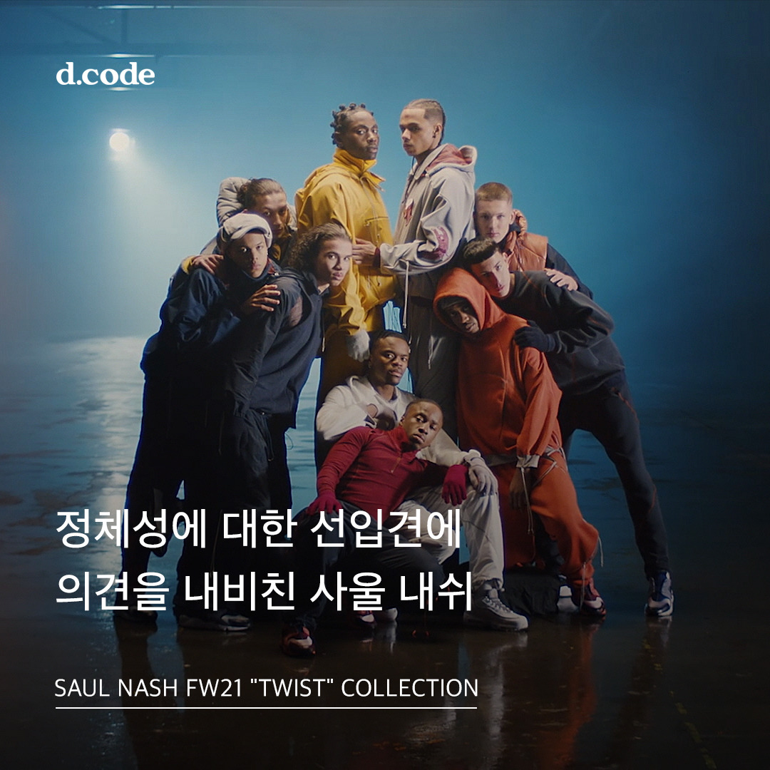 사울 내쉬는 지난 2015년 센트럴 세인트 마틴 스쿨의 퍼포먼스 디자인을 전공하며 안무가로 활동해온 인물입니다. 시간이 흐른 2018년에는 신체의 움직임에 스포츠 웨어 디자인을 결합시킨 형태로 런던에 위치한 왕립 예술대학의 지원을 받아 자신의 첫 컬렉션을 선보였죠. 그는 이 컬렉션에서 안무가라는 타이틀을 적극 활용하여 런웨이와 공연이 합쳐진 새로운 형태의 쇼를 선보이며 단숨에 패션 씬의 루키로 떠오릅니다. 신진 디자이너들을 발굴하고 지원하는 프로그램인 '패션 이스트'의 선택을 받으며 수혜를 받기도 했죠. 현대 무용을 베이스로 하는 그의 안무는 그대로 컬렉션에 녹아들어 자신이 자라온 도시인 런던의 사람들이 입었던 옷들과 그들의 정체성을 더욱 넓게 확장시키는 것을 표현해내고 있습니다.