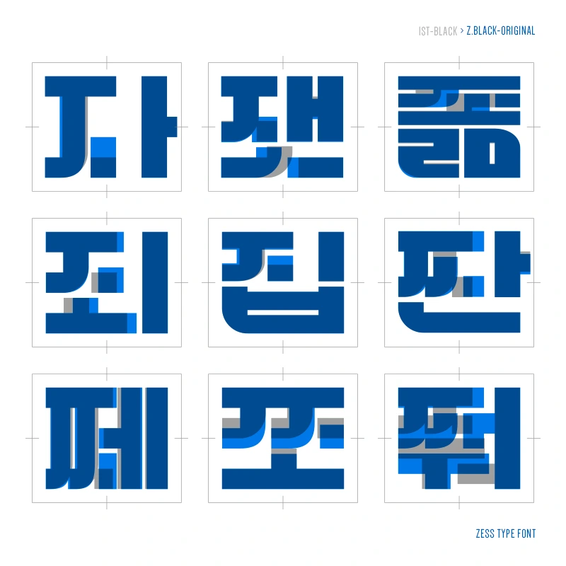 ㄱ.ㄴ.ㄷ.ㅁ.ㅅ.ㅇ.ㅈ. 지. 블랙 오리지날 타입의 문자 1/3 정도를 완료했다. 수정 작업을 하면 할수록 1ST블랙의 미흡한 점이 참 많이도 드러난다. 무턱대고 ㄱ.부터 ㅎ. 까지 순서대로 작업했으니 명확한 규칙 없이 그때 그때 다르게 적용되었다. 사실 당시에는 얼른 완성하고 배포할 생각에 마음이 급해서 수정 작업은 최소한으로 못 봐줄 글자 몇 개만 수정했었다. 이제 와서 열어보면 눈 앞이 캄캄하다. 생각보다 작업 시간이 길어지고 있다. 계획에 없던 검수까지 추가되어 더 부지런히 작업을 진행해야 한다. 그렇다고 대충할 수도 없는 노릇이고. 그저 최선을 다하는 수밖에. 눈의 피로도를 최소화하려고 모니터 밝기를 조절해가며 작업하고 있다. 그러지 않아도 쉽게 충혈되는 눈인데 눈이 빠지도록 작은 화면 가득한 글자들을 하나하나 확인하다 보면 시력이 더 이상 나빠지지 않는 것이 신기할 정도다.