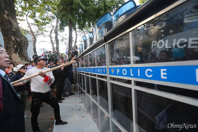 한상균 위원장이 구속된 주된 이유는 집회 참가자들의 경찰관 폭행과 기물파손을 주도한 혐의였다.