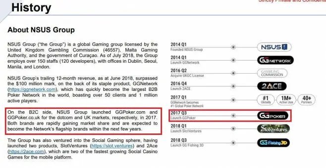 엔서스홀딩스의 투자 제안서에는 자신들의 사업 연혁에 해외 도박 사이트인 GG포커를 출시했다는 내용과 GG포커가 빠르게 성장해 수년 안에 사업 대표 브랜드로 성장할 것이라는 설명이 있었고, 투자 제안은 1000만 달러를 투자받기 위함인데 엔서스홀딩스는 이 투자금을 기업 구조개편에 사용할 것이며 회사가 조세회피처인 영국령 버진아일랜드에 소재한 탓에 은행과의 거래가 받아들여지지 않는 등 사업 확장에 한계가 있는데 투자금을 받으면 캐나다나 영국의 조세회피처가 아닌 지역에 새로운 본사를 만드는 등 기업 구조를 개편하겠다고 했다.