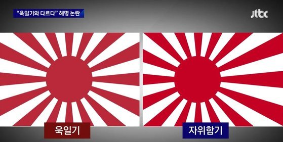 이종섭 국방부 장관은 자위함기와 욱일기가 모양은 비슷하지만 가운데 빨간색 원의 위치가 다르다며 자위함기와 욱일기가 다르다고 주장했던 바 있는데, 이는 일본 정부의 공식 입장과도 배치된다.