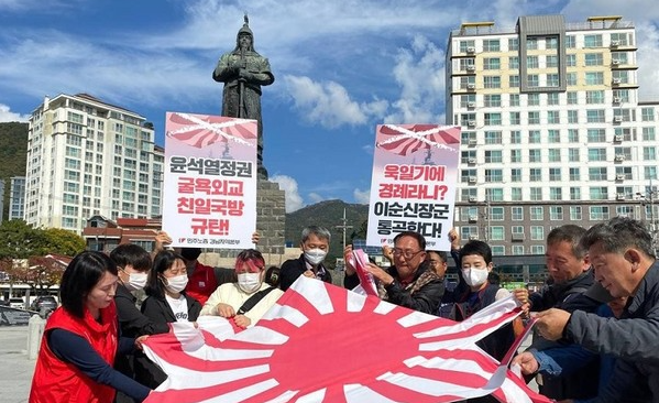 더불어민주당은 6일 윤석열 정부가 국민의 반대에도 기어코 우리 해군이 일본 욱일기에 거수경례하도록 만들었다. 비단 욱일기만의 문제가 아니다. 윤석열 대통령은 대선 당시 이미 유사시 일본군의 한반도 진출 가능성을 열어둠으로써 논란을 불러일으켰다. 우리 안보의 근간은 한미동맹인데, 국제적 충돌의 가능성이 점증하는 동북아 정세에서 한미동맹을 두고 부득불 한일 안보협력을 밀어붙이는 이유가 무엇이냐. 일본은 일제강점기 강제징용 피해자 문제 해결을 외면하고, 유엔의 일본군 '위안부' 문제 권고안조차 이행하지 않고 있다. 대북 억지력에 필요한 한미 군사동맹 이상의, 일본의 한반도 재진출 야욕을 부채질하는 한일 안보협력은 가당치 않다고 했다.