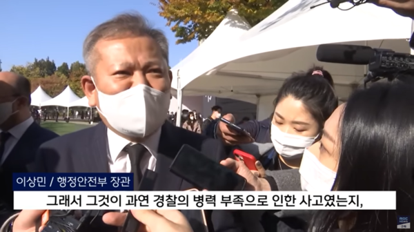 10월 30일 정부합동브리핑에서 이상민 행정안전부 장관은 그전과 비교했을 때 특별히 우려할 정도로 많은 인파가 모였던 것은 아니라며, 사고 원인에 대해서는 통상과 달리 경찰이나 소방 인력이 미리 배치함으로써 해결될 수 있었던 문제는 아니었다고 발언했다.