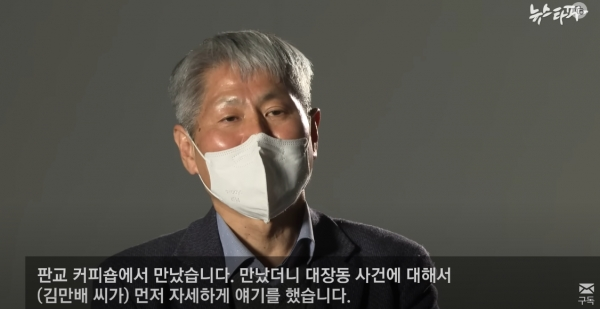김만배는 법조 기자 출신으로 대장동 개발 사업자였는데, 다른 모든 건축 및 개발 사업자들이 다 하고 있는 것처럼 검찰, 정치인 등 인맥에 기대어 사업을 쉽게 허가받고 크게 돈 좀 벌어보려고 했던 사람이다. 그는 검찰이 이재명이 관련된 사업은 무조건 다 범죄라고 규정하고 끊임없이 무에서 유를 창조하는 수사를 하는 와중에 검찰의 입장에 크게 협조해 주긴 했지만 본인이 손해 볼 만한 진술은 인정하고 있지 않기 때문에, 현재 재판에서 사전에 검찰이 언론플레이한 내용과는 전혀 다른 진술을 계속하는 중이다.