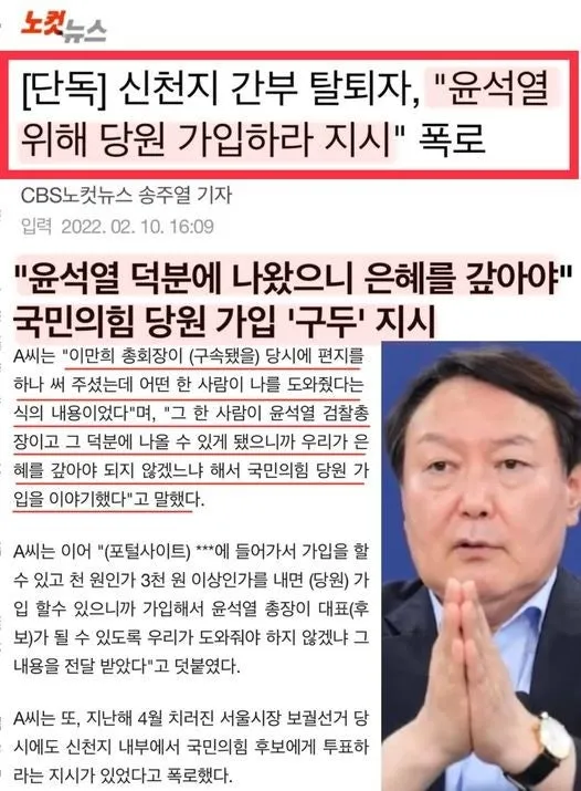 경향신문의 보도에 의하면 내란 정권 초기 YS계인 노 모 씨가 건진과 함께 다니며 각종 이권이나 인사청탁 사업에 개입했다. 노 씨가 경찰인사에 개입했으며 건진법사가 보수 언론의 부장데스크급 인력을 관리하면서 여론을 관리하고 있었다고 한다.