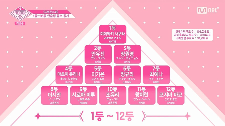 한국인 입장에서는 한일 합작 아이돌이 한국인의 취향에 맞게 나오게 된다는 것이므로 긍정적이지만 한국 사람들이 한국 연습생들에게만 투표해서 일본인 멤버가 다 떨어져버리면 한일 합작의 의미가 무색해지는 것이 문제일텐데, 일단 이날 생방송으로 발표된 1주차 순위는 상위권부터 하위권까지 한일 양국의 멤버들이 매우 골고루 들어가 있는 형태로 나타났다.