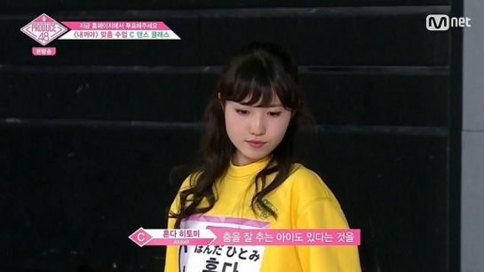 제작진이 1회에서 한국 연습생들에 비해 일본 연습생들의 안무 능력이 떨어진다는 주제의 스토리를 만들려고 했기 때문에, 히토미가 너무 이질적인 모습이라서 편집해버렸던 것으로 보인다.