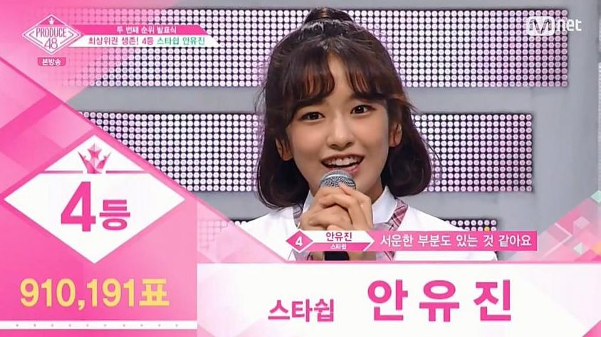 1차 순위 발표식 때도 안유진과 장원영 등 몇몇 멤버들이 높은 순위에 감격해하거나 눈물 흘리는 모습이 없고 이 순위가 당연하다는 듯 담담한 소감 발표에 비호감을 느꼈다는 반응이 다소 있었는데, 소감 발표에서 보다 조심할 필요가 있다.