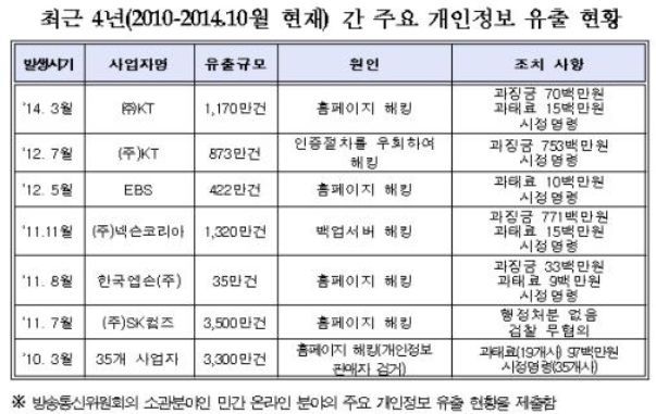 2012년에는 KT의 영업 전산망을 해킹해 870만 건의 개인 정보를 빼돌린 텔레마케팅 업체 대표가 구속되는 일이 있었다. 여기서 KT는 5개월간 고객 정보 유출을 전혀 눈치채지 못했다고 한다.