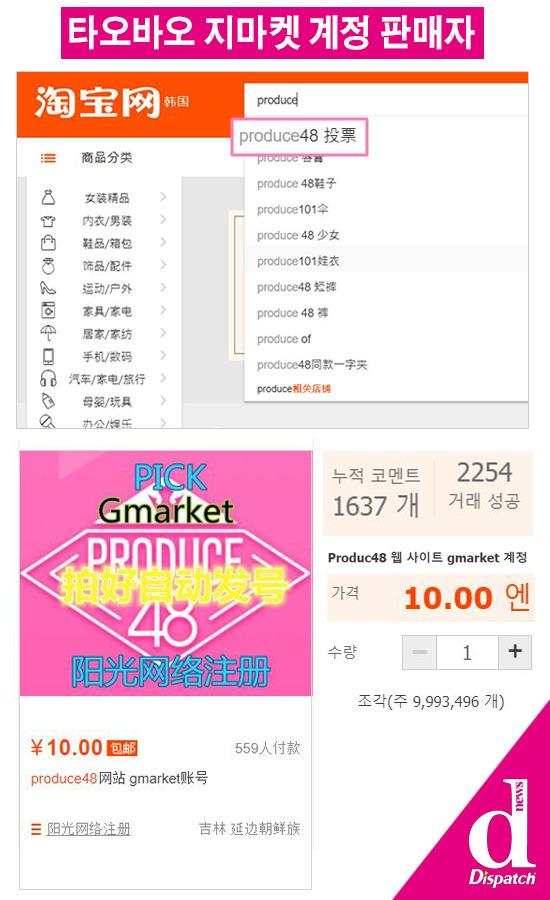 중국 팬들이 프로듀스48에 투표를 하기 위해 G마켓 계정을 사고 있었다?