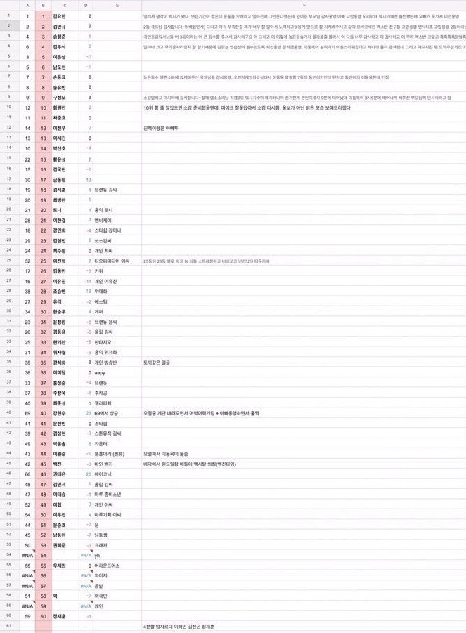 40위에 오른 강현수가 지난주 대비 29계단 상승해서 가장 높은 순위 상승을 기록했다. 강현수가 이렇게 많이 오른 것은 확실히 아버지의 홍보가 있었기 때문일 것이다.