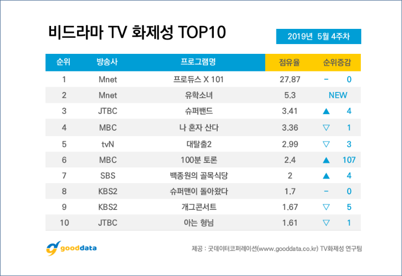 신규 유입될 만한 대중적인 성향의 팬들이 주로 높은 순위 멤버들의 직캠을 보는 것으로 관심을 보이기 시작할 수 있는데, 공연 영상으로 신규 팬들을 확보하는데 어려움이 있을 것이며 현재로서는 프로듀스 X가 갈수록 보는 사람들만 보는 프로그램이 되어 버리는 상황이 더욱 고착화될 가능성이 높아 보인다.