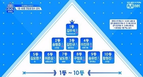 이날 방송 초반 상위 10인의 현재 순위를 기습 공개했다.