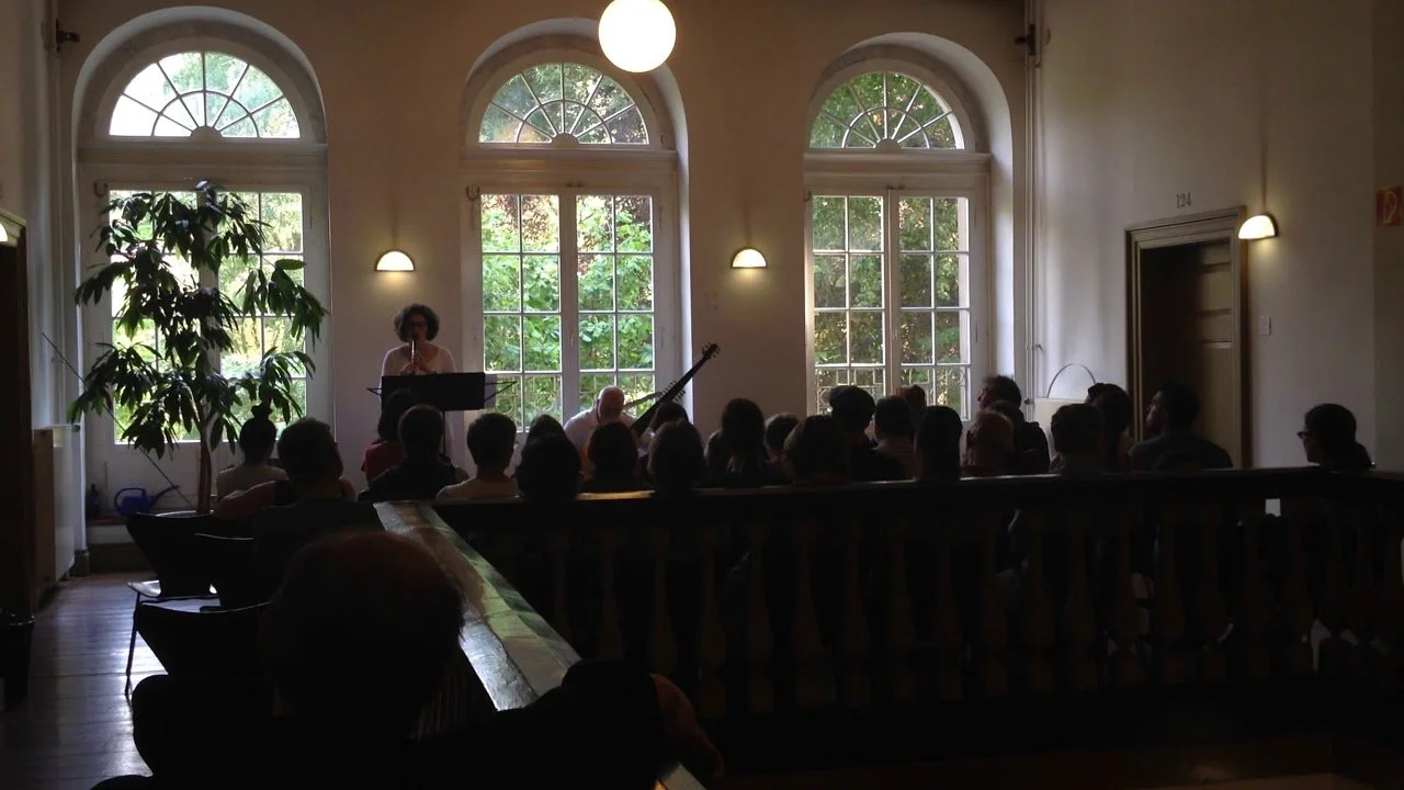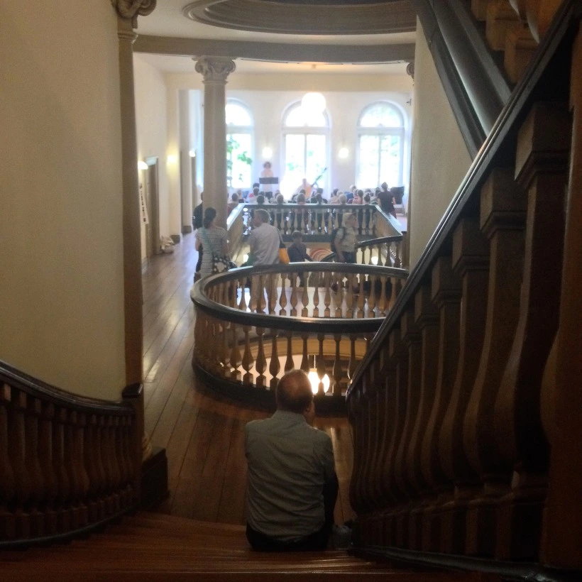 나, Leonie, Lisa가 셋이 옹기종기 바닥에 앉아 2층에서 열리는 음악회를 봤다.