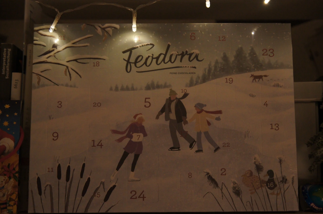 주문을 끝내고 알렉스에게 크리스마스 초콜릿 달력을 선물했다. 알렉스는 처음 받아보는 초콜릿 달력이라며 정말 기뻐했다. 우리가 선물을 주고받는 사이는 아니지만, 며칠 전 나는 알렉스를 위해 특별히 초콜릿 달력을 준비했다. 몇 년 전 뮌헨에서 만났을 때도 지난 2월 베를린에서 만났을 때도 매번 알렉스가 밥을 샀기 때문이다. 학생인 나에게 한 끼 외식비가 큰돈이라는 걸, 직장인 알렉스는 알고 있는 듯했다.