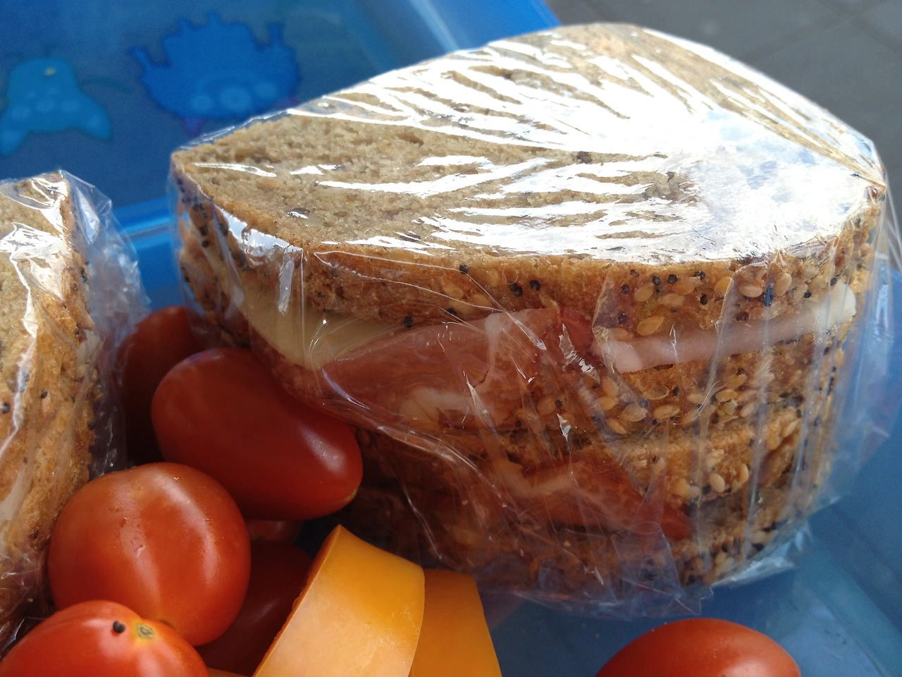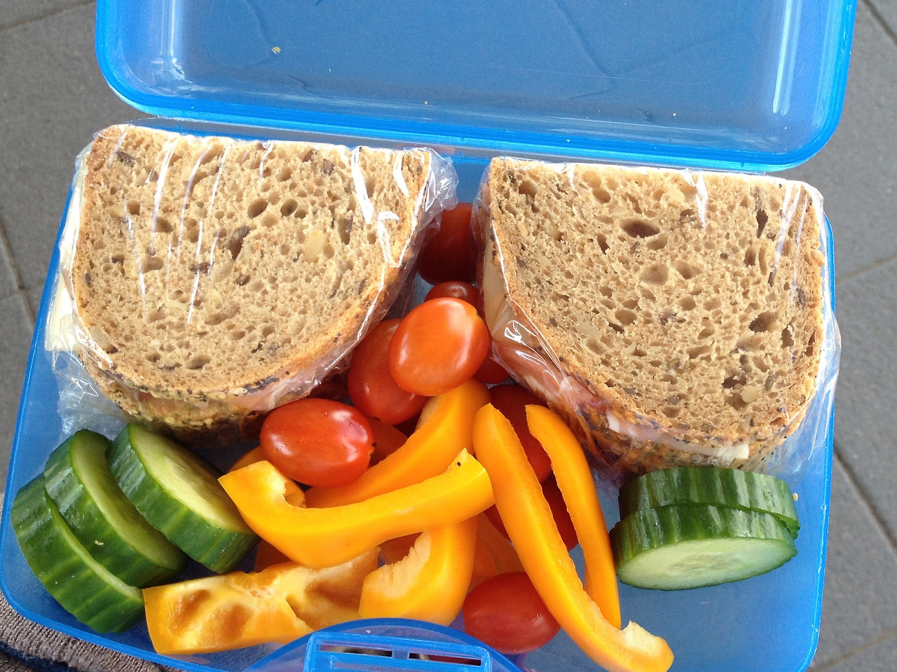 언니가 정성스럽게 싸준 도시락. 알록달록 야채와 샌드위치. 샌드위치에는 치즈와 살라미가 들어있다. 오늘 함께 피자를 해먹기로 했는데 시간이 없었다. 피자에 넣을 살라미를 빵 사이에 넣어 준 언니.