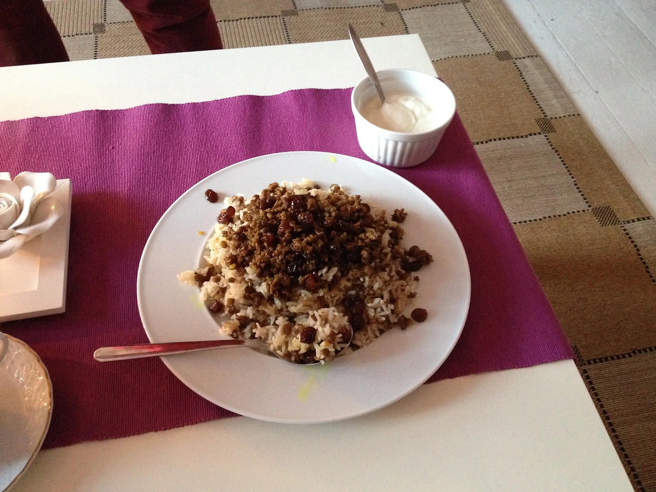 언니는 나를 위해 맛있는 이란 음식을 만들어 놓았다. 오는 길에 바나나를 먹어서 배가 안 고프다 하니 실망하는 눈치다.