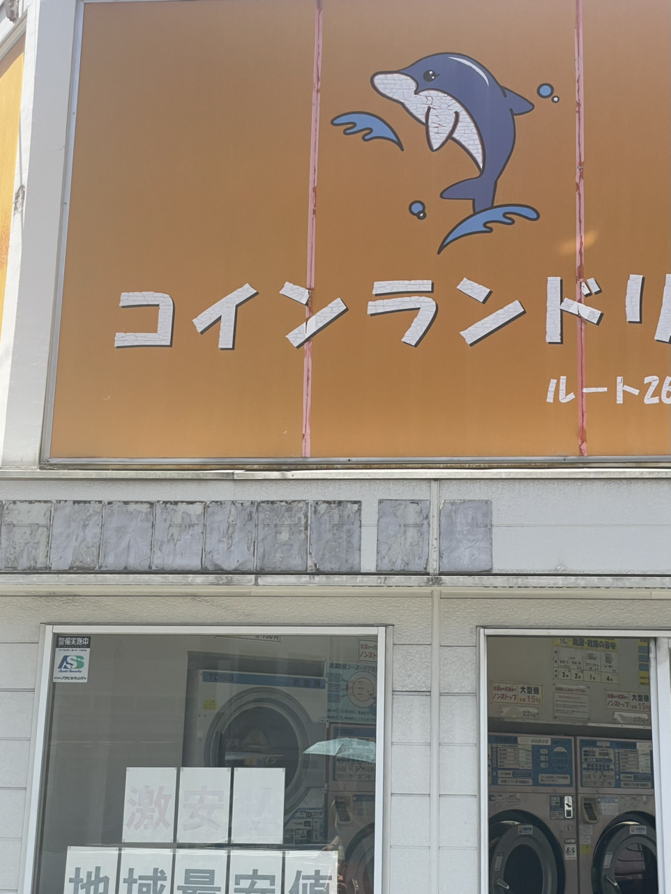 귀여운 일러스트 로고가 그려진 코인 세탁소.