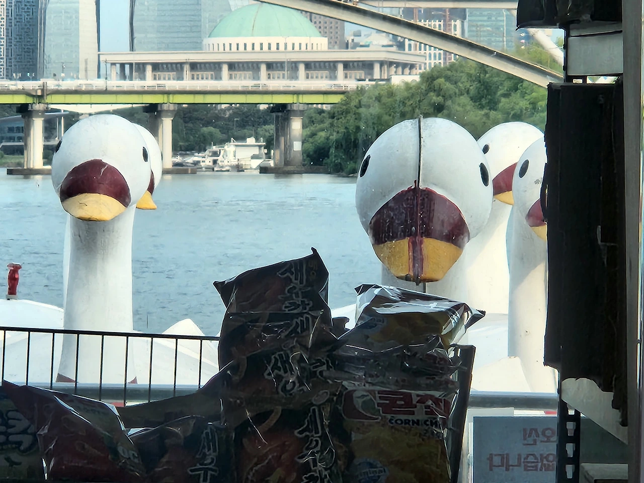 수요일에 팀회식으로 갔던 아리수 만찬은 제법이었다. 와이키키나 잠두봉에 비하면 세련되지는 않으나 한강 바로 옆에서 고기를 먹는다는 즐거움은 비등하다. 아리수 만찬의 가장 큰 장점은 고기가 싸다는 점인데. 100그람에 삼겹살이 오천원정도. 면세라 그렇다고 하는데 고기질이 딱히 나쁘지도 않고 부들부들하니 좋다. 한라산도 대선도 파는데 대선으로 부드러이 달려보았다. 한강고기는 맛있다. 함께 가실 분?