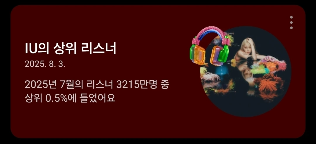 아이유를 좋아한다. 중학생 아이유가 윤도현 러브레터, 유희열 스케치북에 나올 때도 좋아했는데. 17여 년이 지난 지금도 좋아하고 있다. 아이유 유애나 8기 물품이 배송예정이라고 주소확인을 하라는 문자를 받았다. 박보검 칸타빌레 마지막화에 아이유가 깜짝 등장하는 모습을 보았고, 유튜브뮤직 아이유 리스너 상위 0.5%라는 알람을 이번 달에도 받았다. 이번 주도 아이유를 좋아했다.
