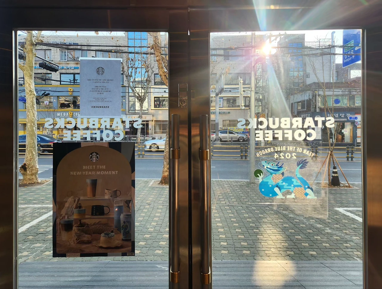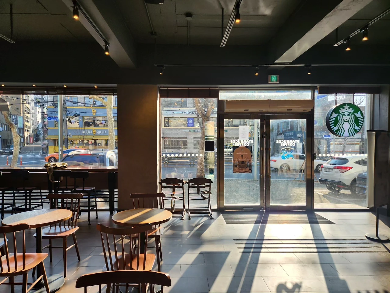 햇살 스미는 스타벅스 모습을 보는 행운도 있는 아침-