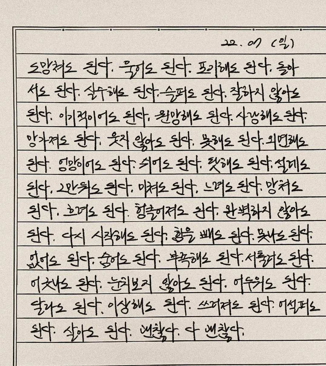 기억은 왜곡되기 마련이듯, 갈기갈기 찢어진 기억들은 이제 더는 나를 괴롭힐 수 없다. 나를 지키는 건 나라는 걸 알게 되었고, 더는 나를 벼랑 끝내 내몰고 밀지 않는 법도 배웠다. 마음을 이렇게 먹게 되기까지 많이 힘들었다. 그럼에도 불구하고 매일 지키려고 했던 건 3가지.
