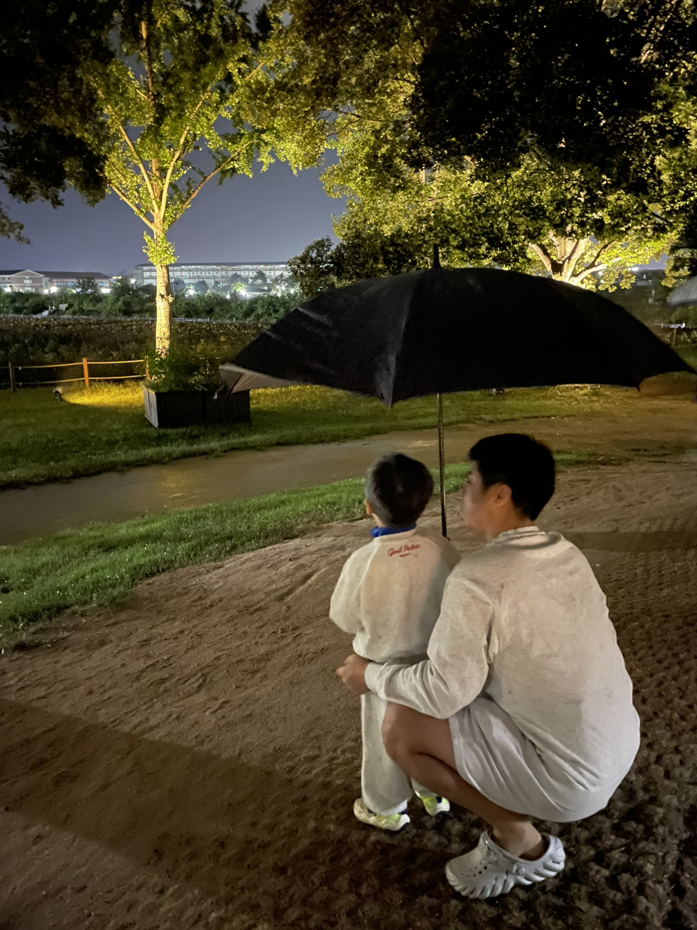 아들내미도 너무 좋아했다. 물 웅덩이를 첨벙첨벙 밟는 탓에 엄마 아빠 신발도 젖고, 바지도 젖었지만 행복해하는 모습에 두배로 행복했다. 가을밤의 비 냄새도 좋고, 쌀쌀한 바람도 좋고 야경도 좋고 다 좋았다.