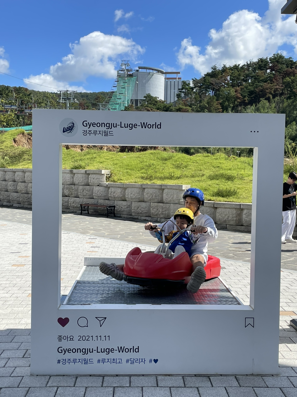 우리는 야경과 치킨을 마지막으로 잠에 들었고 늘어지게 늦잠을 자고 일어나 비단벌레 전기차를 타고 경주를 투어 하려고 했지만, 이미 모두 예약이 마감된 상태라 루지를 타러 갔다.