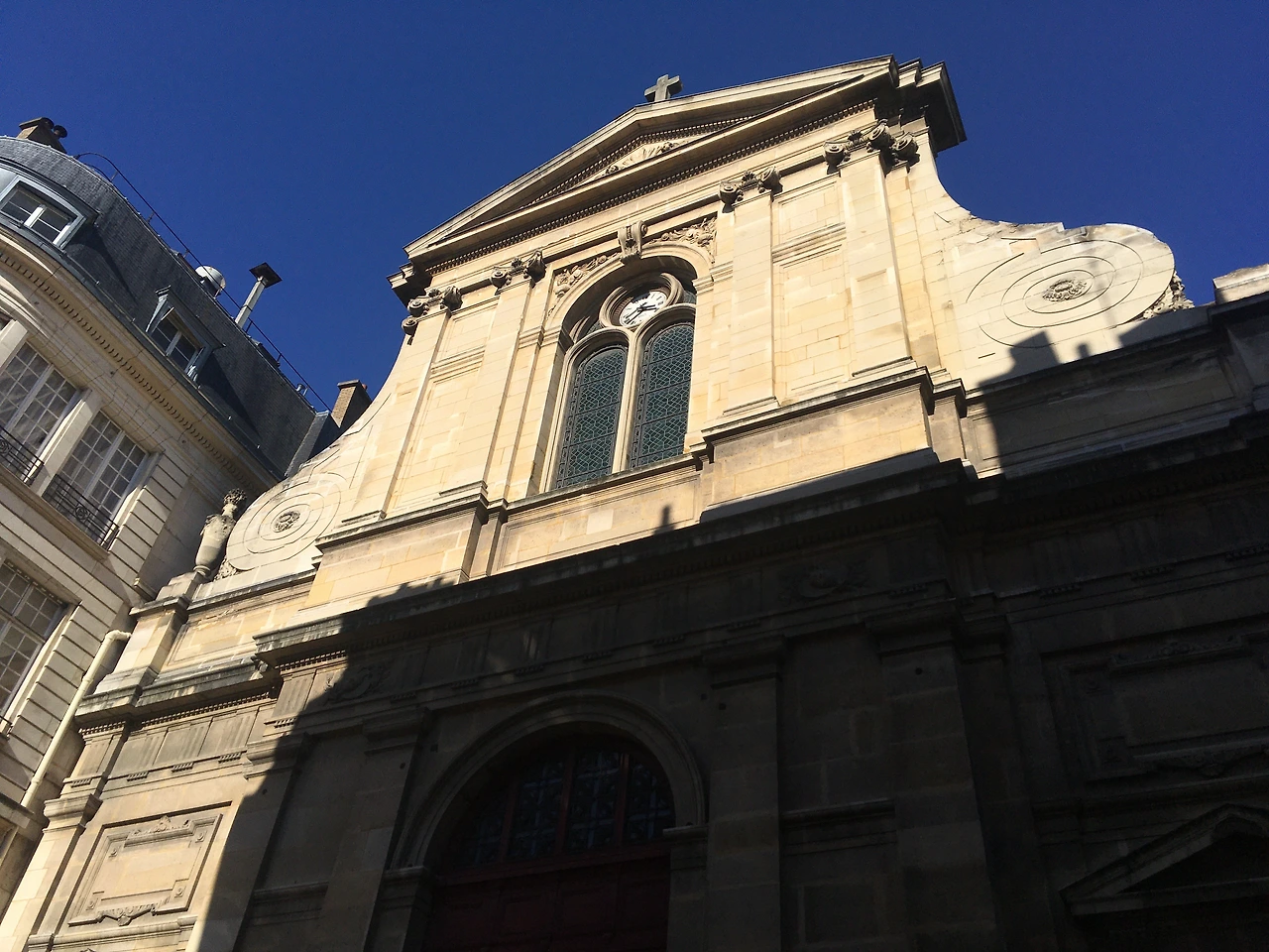 지난 주말, 마레의 구석구석이 인파로 북적였다. 익숙하던 길을 선택하여 집으로 돌아가는 지하철을 타러 가는 참이었는데 옆 골목에 보이는 교회가 눈길을 사로잡았다. 바로 옆 놀이터에서 아이들이 노는 소리도 들려서 정다운 풍경을 조금 더 가까이에 가서 보고 싶어 졌다.