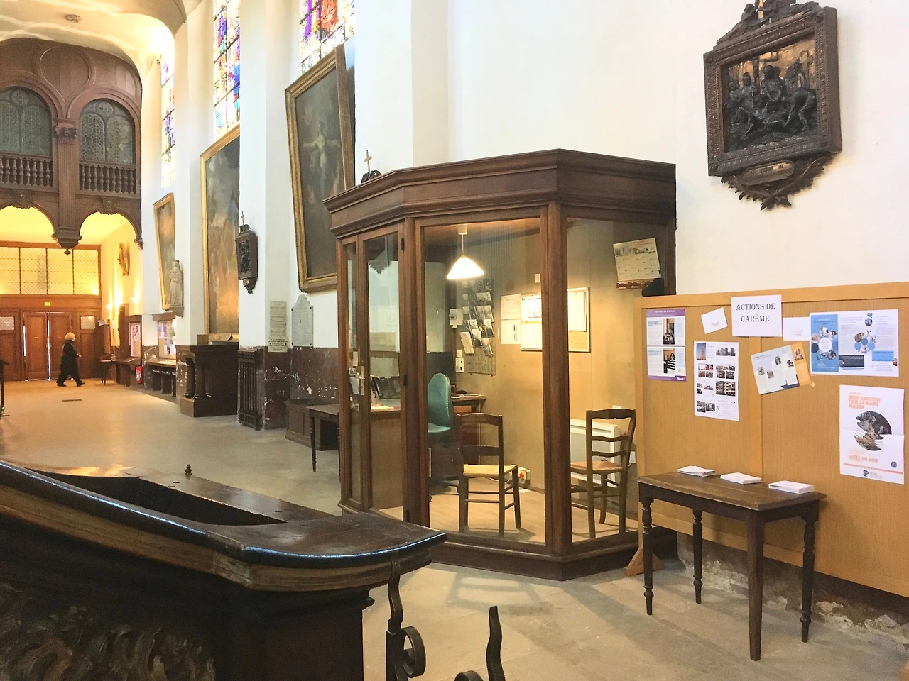 교회 여기저기를 둘러보며 신기해하고 있으니 사진 속 할아버지께서 캐비넷에 들어가시더니 팸플릿 하나를 건네주셨다. 저분이 여기를 관리하시는 것 같았다. 나가기 전에 감사하다는 인사를 드리려고 했는데 계속 왕복으로 걸어 다니셔서 타이밍을 놓쳐버렸다. 다시 나가보니 사람들이 가득한 마레 거리들이 눈 앞에 보인다. 집 가는 길에 우연히 방문한 교회에서 뜻밖의 발견들을 하게 되어 조금 피로했던 정신 상태가 다시 맑아진 것을 느낄 수 있었다.