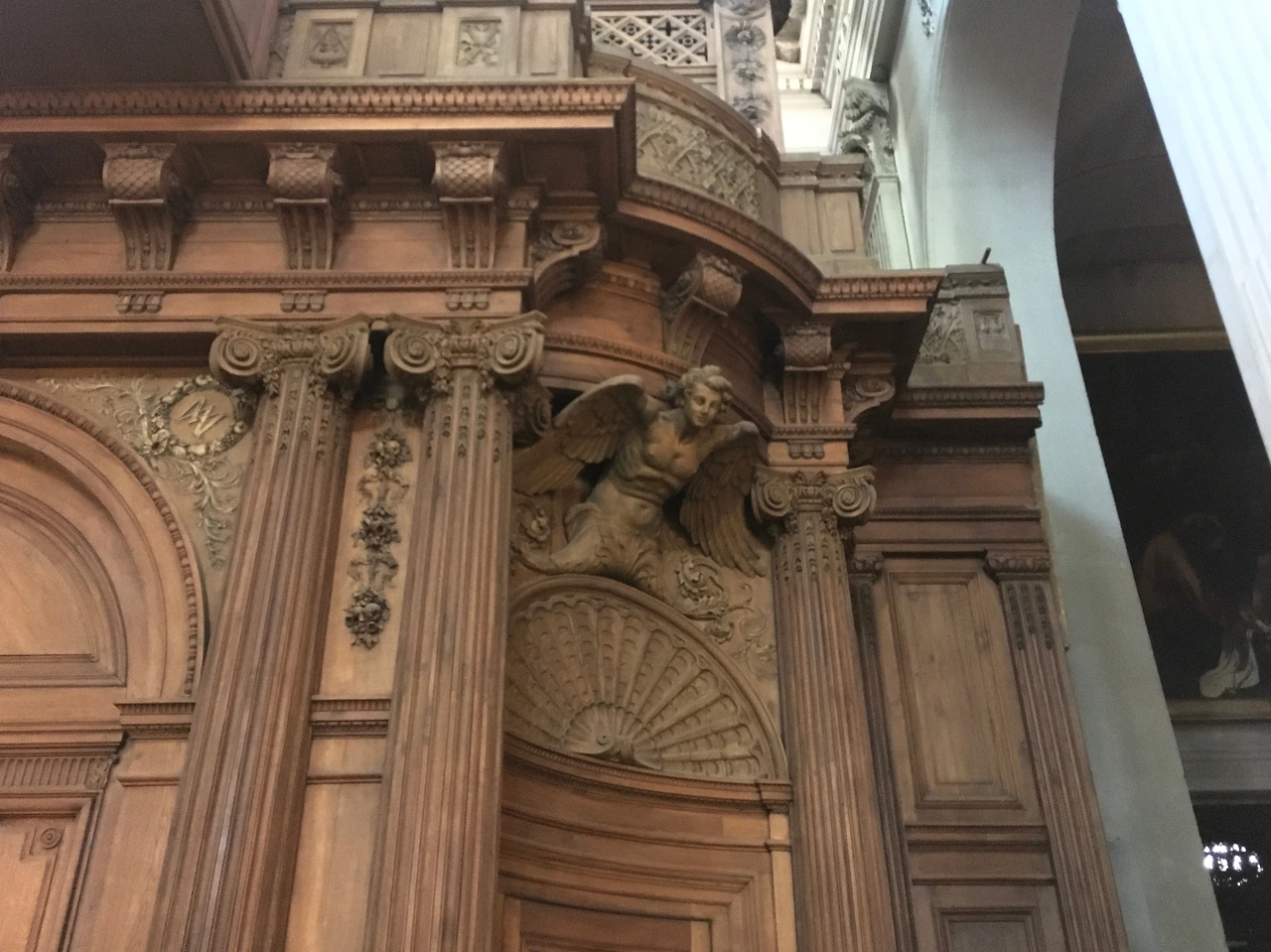 교회 정문의 뒤쪽에는 1841년에 만들어진 커다란 오르간이 있다. 마지막으로 보수 공사를 한 것은 1968년이라고 한다. 하부의 세 개의 문과 벽 그리고 상부의 오르간이 모두 하나의 나무 장식으로 이루어져 있다. 파리에 교회가 정말 많지만 이렇게 멋진 오르간 구조를 가까이에서 볼 수 있는 기회는 흔치 않다. 오르간이 없는 경우도 있고 공간 커서 2층으로 이루어져 있으면 보통 오르간은 2층에 올려져 있다.
