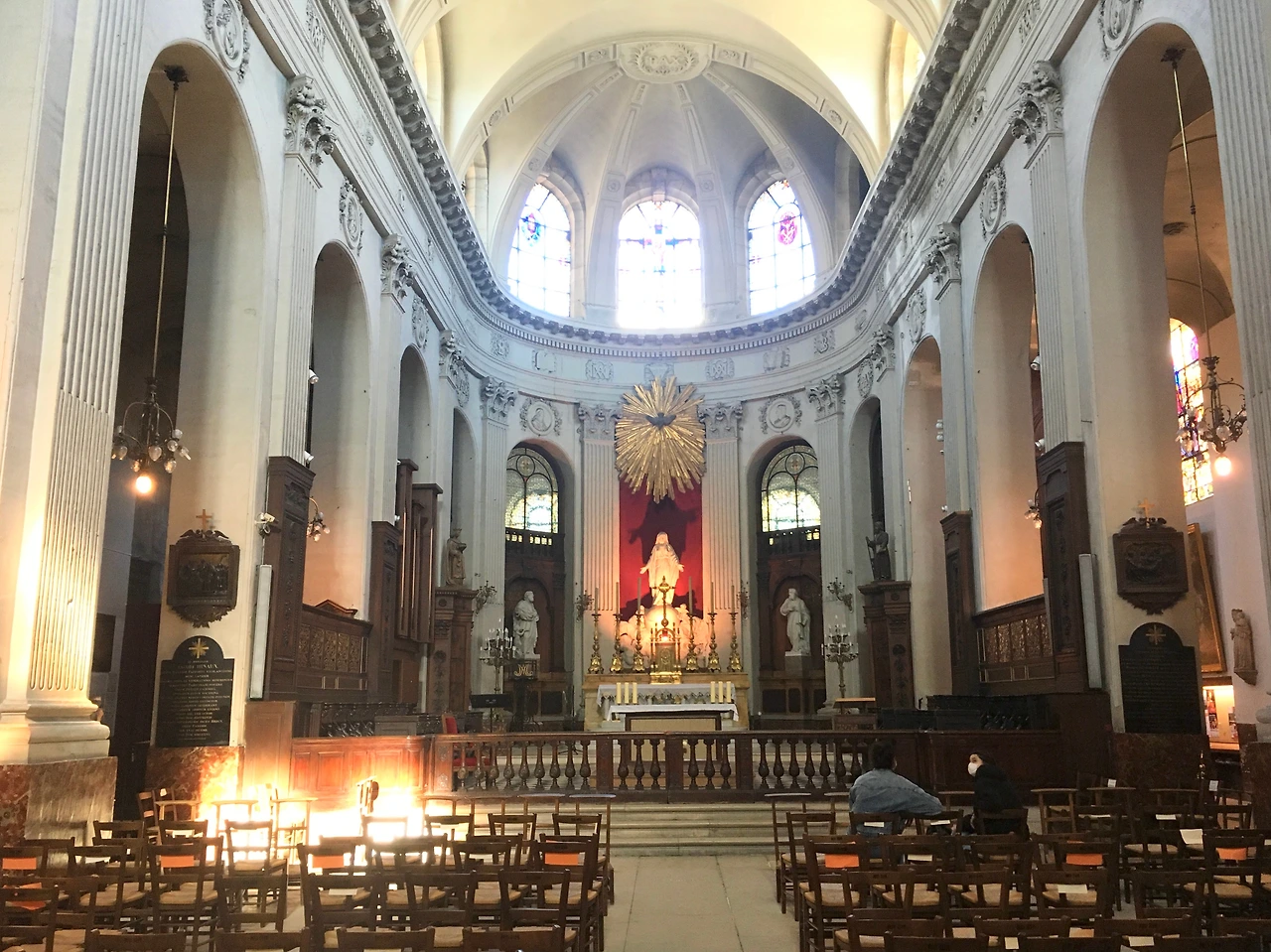 밖에선 수많은 인파들이 돌아다니고 각종 빈티지 샵, 부티끄들이 있지만 이 교회 안으로 들어서는 순간 모든 소음들과 차단되며 정적이 감돈다. 완전히 다른 성격의 공간 속으로 들어와 있는 느낌이다. 추운 겨울에 들어설 때는 온기가 느껴지며 스테인드글라스에 반사되는 온갖 색감의 빛들이 내부 기둥, 바닥까지 닿아있다.