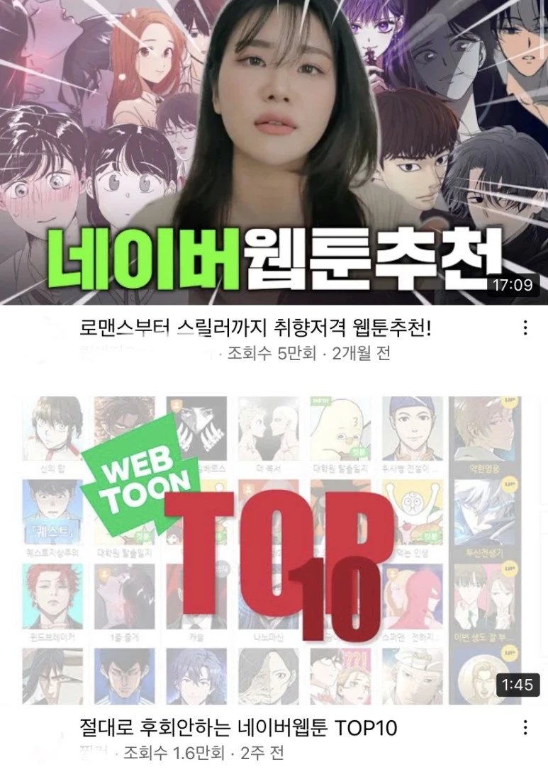 (2). 유튜브와 네이버TV를 통해 '웹툰 추천' 마케팅 콘텐츠