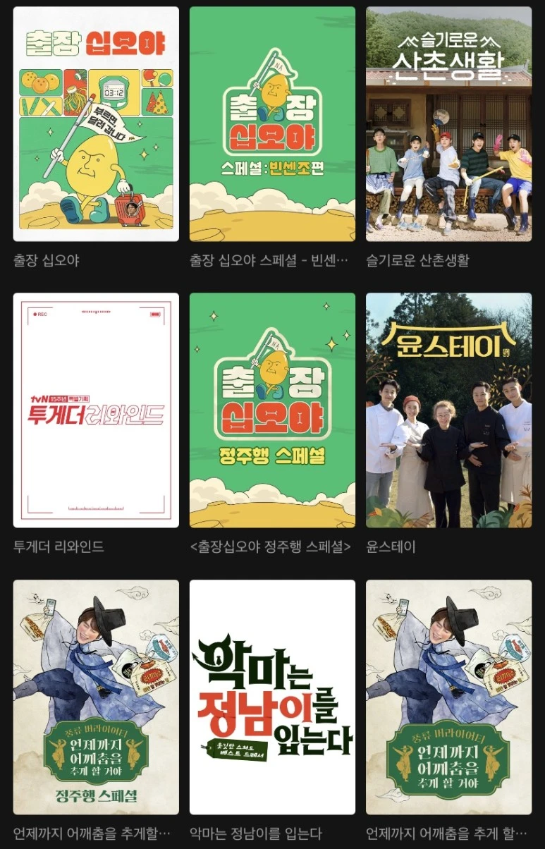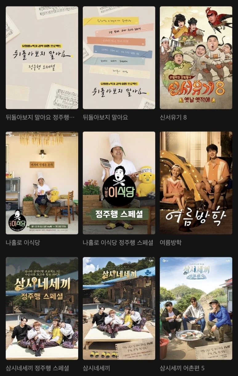 자사만이 단독으로 보유하고 있는 콘텐츠가 다수 있다. 예컨대 CJ E&M 간판 PD인 나영석 PD의 컨텐츠는 현재 티빙에서만 다시 볼 수 있다. 실제로 티빙에는 나영석 PD의 꽃보다 시리즈 ( 꽃보다 할배, 꽃보다 누나, 꽃보다 할배 스페인, 꽃보다 청춘 라오스, 꽃보다 할배 그리스, 꽃보다 청춘 아이슬란드, 꽃보다 청춘 아프리카, 꽃보다 할배 그땐 그랬지 등), 신서유기 시리즈, 신서유기 스핀오프 예능( 강식당, 이식당, 라끼남, 삼시세네끼, 꽃보다청춘 위너, 언제까지 어깨춤을 추게할거야 등), 삼시세끼 시리즈, 윤식당, 신혼일기, 스페인하숙, 여름방학 등 모든 콘텐츠가 유통되고 있다. 그간 편집본과 유튜브 오리지널 예능으로 아쉽지만 만족했어야 했는데 티빙 구독으로 원하는 콘텐츠를 언제 어디서든 원하는 만큼 볼 수 있게 되어 너무 만족스럽다.