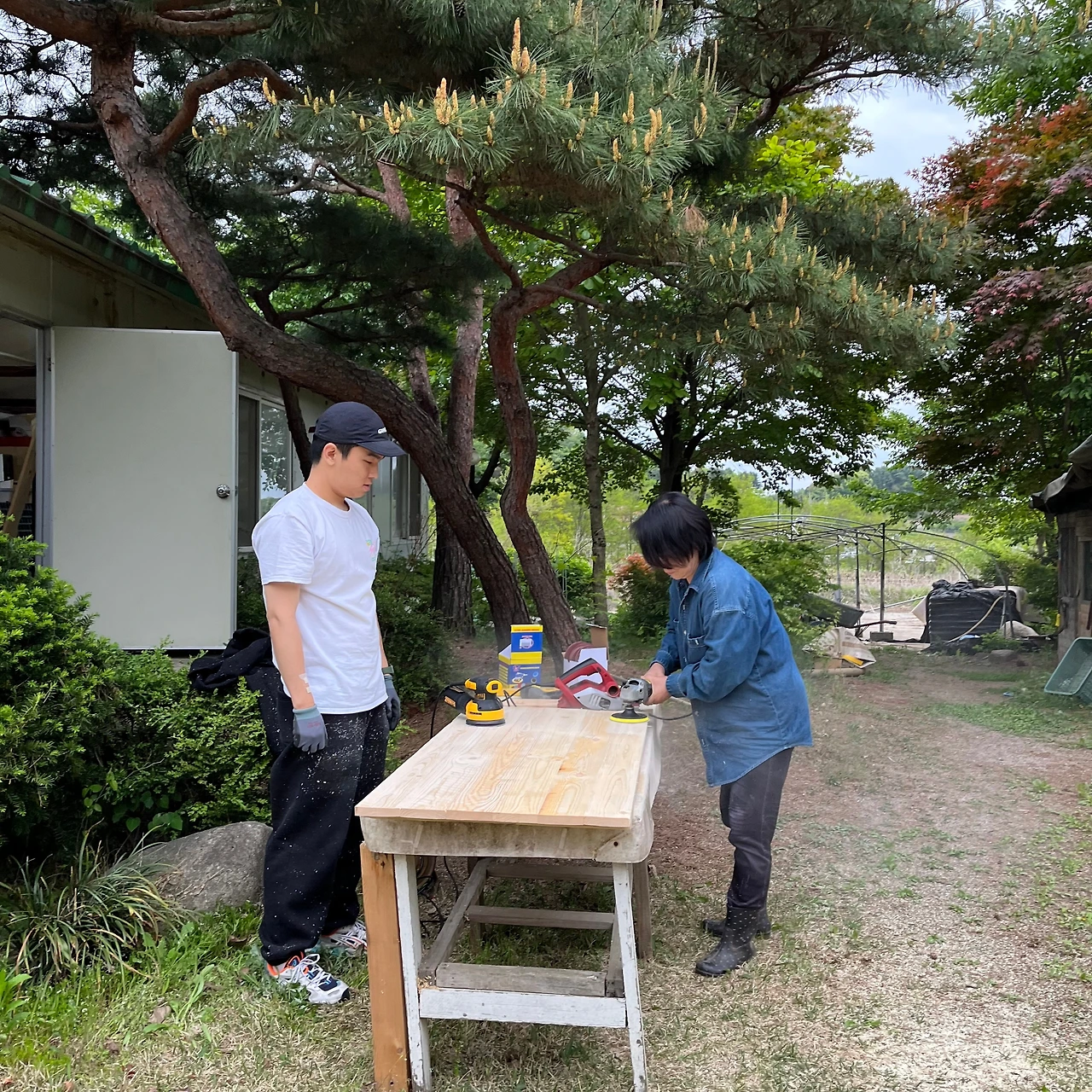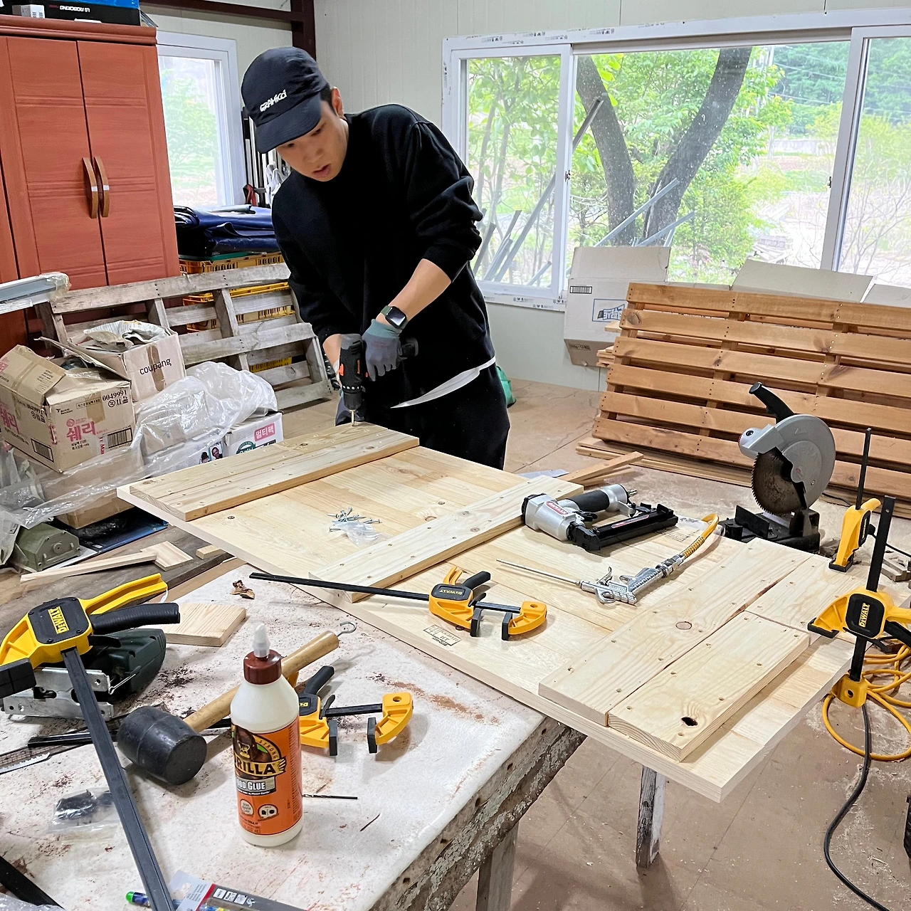 이번 봄에 순은 거실에 둘 테이블을 손수 만드느라 주말마다 바삐 움직였다.