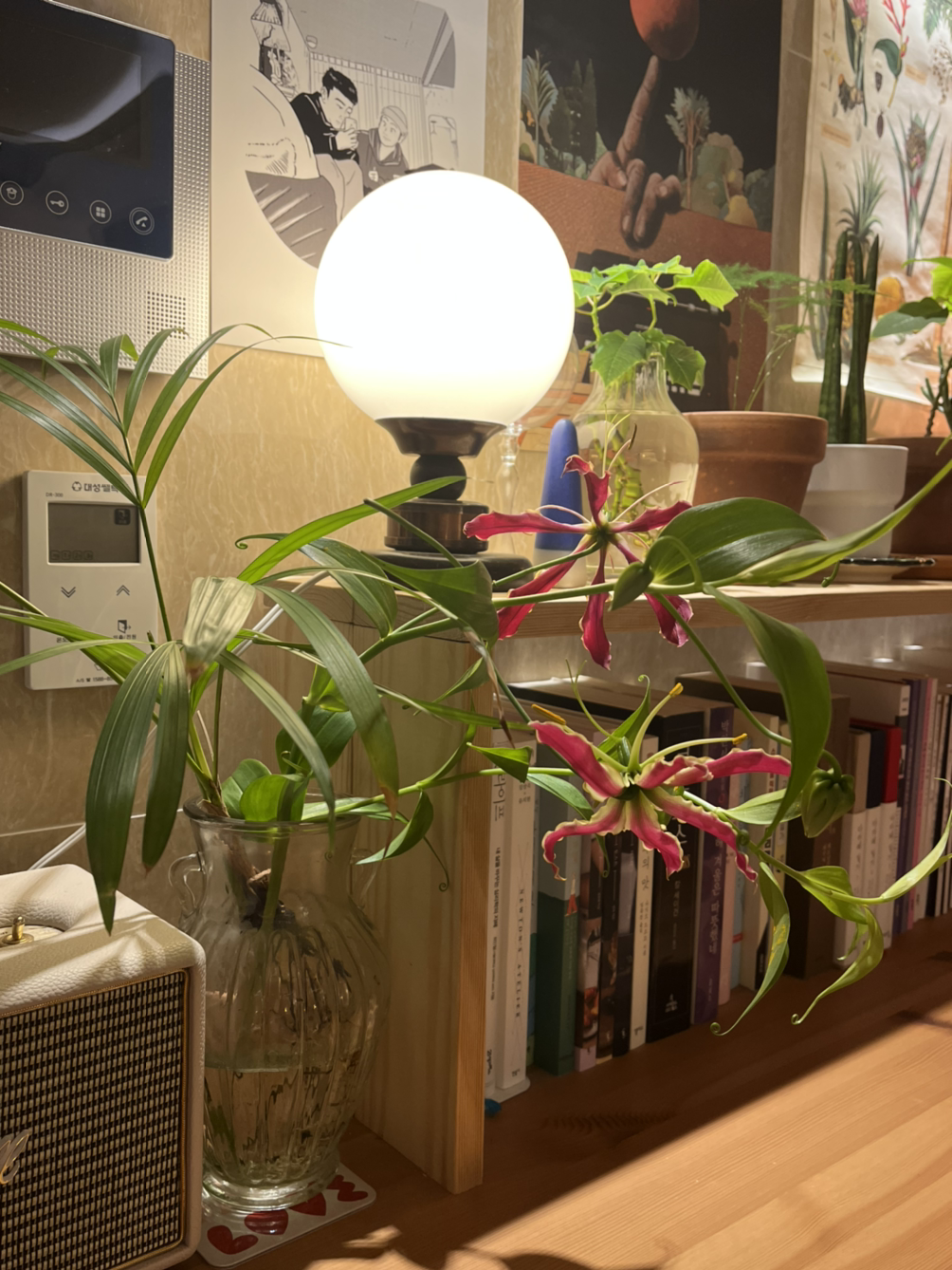 방콕 냄새 솔솔 나는 꽃이 있길래 한 송이 사서 거실에 꽂아두었다.