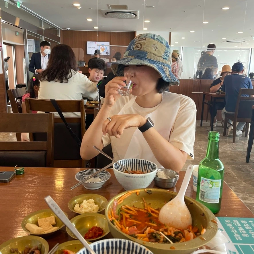 도착하자마자 청초수물회집으로 택시타고 달려가 소주 한 병 때림.