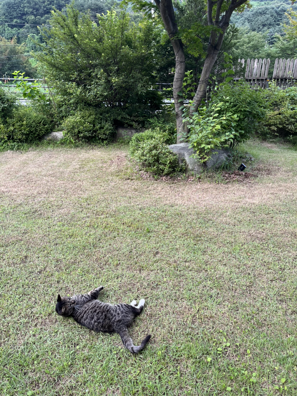 여유로운 시댁 고양이. 자꾸 저 자세로 누워서 잠만 자길래 걱정될 정도야..