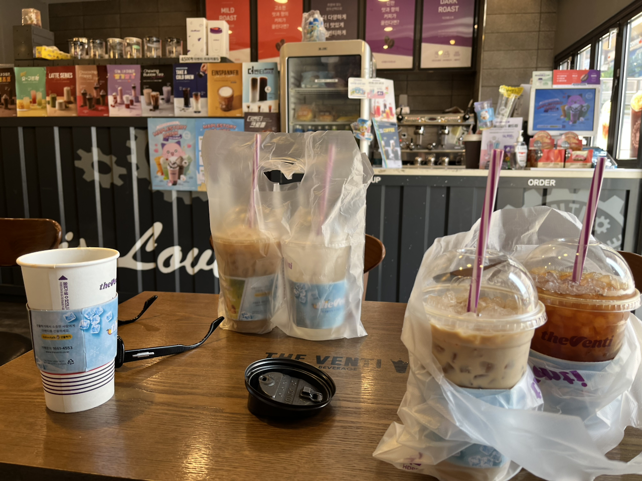 집 앞 더벤티에서 음료 다섯 잔을 샀는데도 11000원을 넘지 않았다.