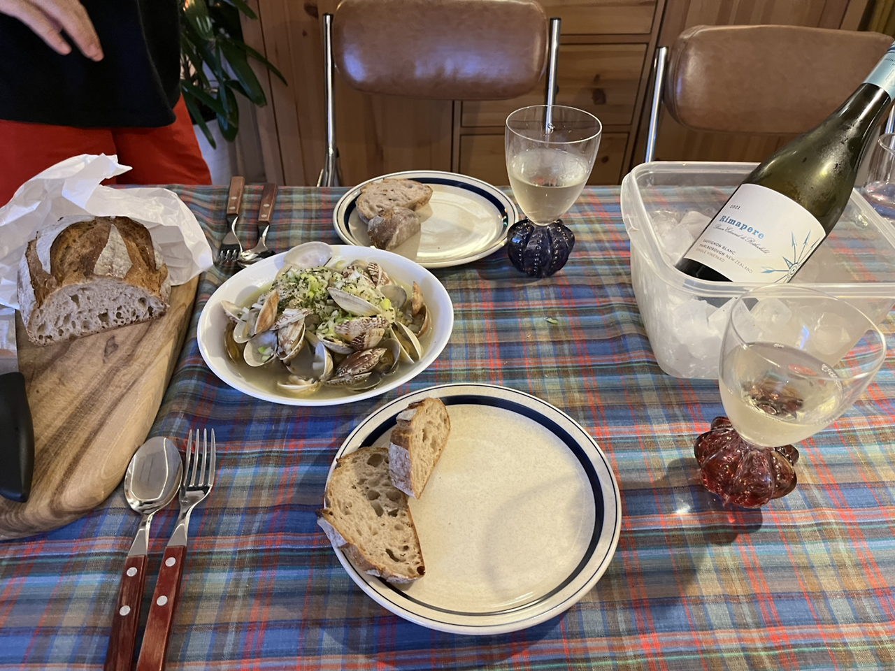 동죽 파스타 해먹은 날. 화이트와인과 말해 모해.. (고추튀각 아이스버킷 귀엽..)