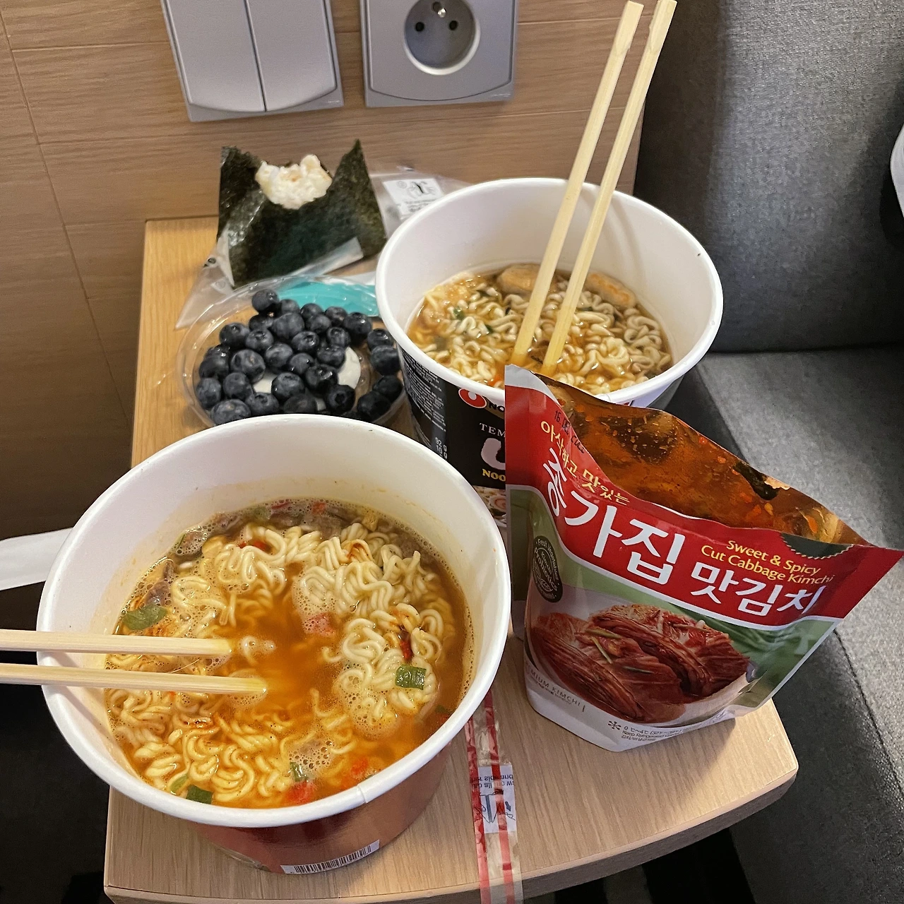 한국에서 라면 하나 챙겨오지 못한 죄로 한인마트에서 4유로짜리 컵라면과 8유로짜리 김치, 3유로짜리 삼각김밥을 샀다.. 맛이 없을 수가 있을까요?