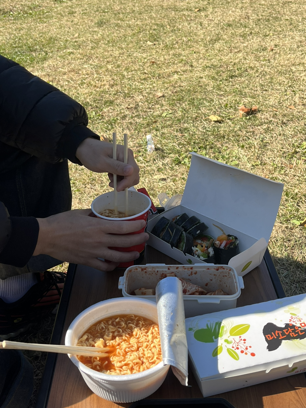 입김 나오는 야외에서 먹는 컵라면. 말해 무엇하겠습니까..