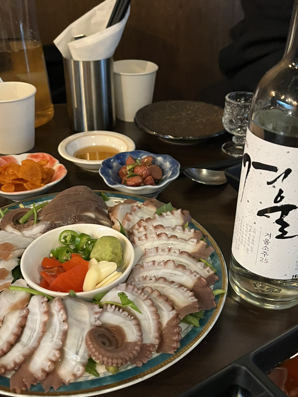 집 앞 포차. 친구에게 문어를 대접했다. (참 저 겨울소주 매우 맛있어서 인터넷 주문으로 따로 쟁여둠ㅎㅎ)