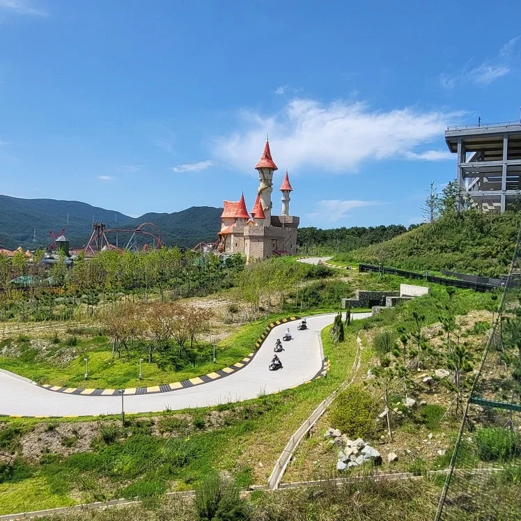 뜨거운 여름이지만 아이들의 웃음꽃을 보고 싶다면 동화 속에 나오는 상상의 나라로 향해보아요. 한 발자국씩 점을 찍다 보니 어느새 부산까지 내려왔어요. 무슨 일로 부산을 왔는지 기억나지 않지만 여러 명의 아이와 함께하는 즐거움은 말로 표현할 수 없어요. 그러면 루지를 타러 가 보아요.