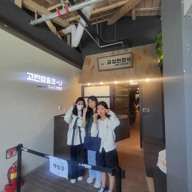 아이의 동네 친구들을 소환해요. 친한 친구들과 모여 출발해요. 주말은 사전예약해야 하니 바쁘게 톡톡 두드리세요. 아이에게 새로운 경험은 당당하게 살아가는데 힘이 되어요. 입구에 들어서서 커다란 문을 활짝 열어요. 방 탈출 입구에 들어서면 제 이름이 예쁘게 표시되어 있어요. 입구에서 기다리면 직원분이 나오세요. 저는 방 탈출을 건대역에서 경험해 보았지만 아이들은 처음이라 어리둥절해요. 우선 LGthinQ 앱 설치 및 가입 필요해요. 어려울 거라는 직원분의 말을 듣고 체험을 시작해요. 태블릿으로 힌트를 무한 제공해 주세요. 45분짜리인데 25분이 지나도 첫 문제를 풀지 못해요. 그래서 직원분에게 도움을 요청하니 힌트를 주시며 열쇠 꾸러미를 주시며 친절히 설명해 주세요. 그다음 문제는 아이들이 협동하며 탄력을 받아 문제를 풀어요. 여기서 머리 좋은 아이들의 아이디어가 통통 튀어나와요. 서로서로 이야기를 주고받으며 체험하네요. 거실, 작업실, 세탁실, 조정실 4개의 열쇠를 찾아 관문을 통과해야 해요. 천천히 방탈출의 목적을 달성해요. 막히는 순간이 오면 태블릿의 힌트와 직원분에게 도움을 요청해요. 무료로 진행하는 프로그램이지만 아이들이 알차게 게임에 참가해요. 열쇠를 열고 모든 문제를 풀지 못하는 아쉬움이 남지만 서로 다독이며 다음을 기약해요. 다 끝나면 금성 전파사 로고가 달린 냉장고 자석을 주세요. 폐가전으로 만들었다는 알록달록 문구가 예뻐요. 선물도 득템하고 아이와 함께 신나는 체험을 했어요. 시간이 된다면 나머지 체험도 신청해요. 현장에서 즉석에서 참여 가능해요. 식물 심기, 팔찌 만들기, 어릴 적 즐겨 하던 오락실도 있어요. 아이들이 즐겨 하는 체험이 가득해서 즐겁게 놀게 돼요. 덕분에 친구들과 더욱 다정한 모습으로 추억을 만들었지요. 다 함께 행복하면 좋잖아요. 날마다 즐거운 일상이 되도록 손잡고 가 보아요.