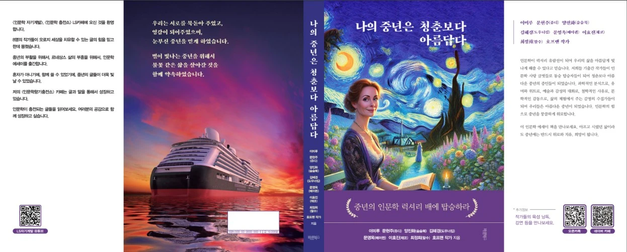 인문학 모임에서 사고를 친다. 개성이 강한 작가들이 한데 모여 책을 공동으로 집필한다. 생성형AI 강연으로 24시간이 모자라는 인기 강사 이미루 작가님, 날마다 영화를 소개하며 인문학의 정점을 찍는 쥬디작가님, 철학자 니체를 소환시키며 인문학 모임에서 열렬한 강연을 펼치는 숨숨북 작가님, 쾌활하고 명쾌한 목소리로 시선을 압도하는 김혜경 작가님, 화사한 외모와 달콤한 목소리로 사람들을 살살 녹여주시는 메이퀸 작가님, 재치 넘치는 나=채코 등 8명이 모여 책을 내게 된다. 3월24일, yes24시에서 예약 판매가 등장한다.