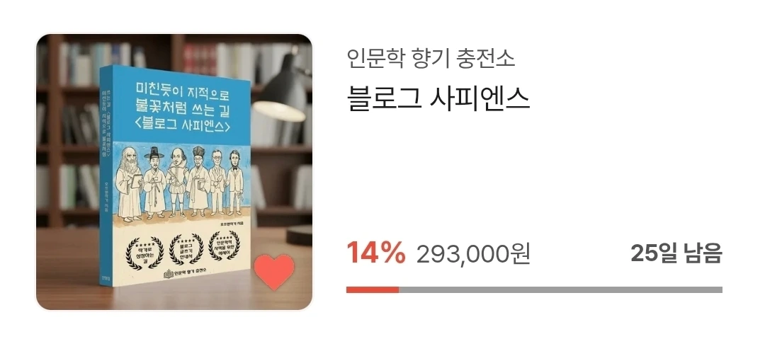 그가 사는 베트남까지 당장 달려가 글쓰기, 책쓰기를 응원하고 싶지만 블로그에 사부작 사부작 글쓰며 따뜻한 온기를 전하고 싶어. 그의 신간 <블로그 사피엔스>가 텀블벅에 나왔으니 그의 지적인 정신을 파헤쳐보면 어떻까? 나랑 같이 의사, 간호사 선생님처럼 매스를 두손에 번쩍들고 해부해보도록 하자.(나는야 다빈치)